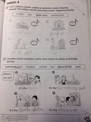 Waszym zadaniem na dzisiaj jest przygotować karty obrazkowe z Waszych ćwiczeń. Wycinamy je i wklejamy do zeszytu z języka angielskiego (można założyć nowy). Każdy z obrazków podpisujemy odpowiednią nazwą miejskich atrakcji. Pamiętajcie, że na końcu Waszego podręcznika jest słowniczek z wyrazami z Unit'u 6. Dbajcie o poprawną pisownię dzisiaj skupiamy się na prawidłowym zapisie wyrazów.