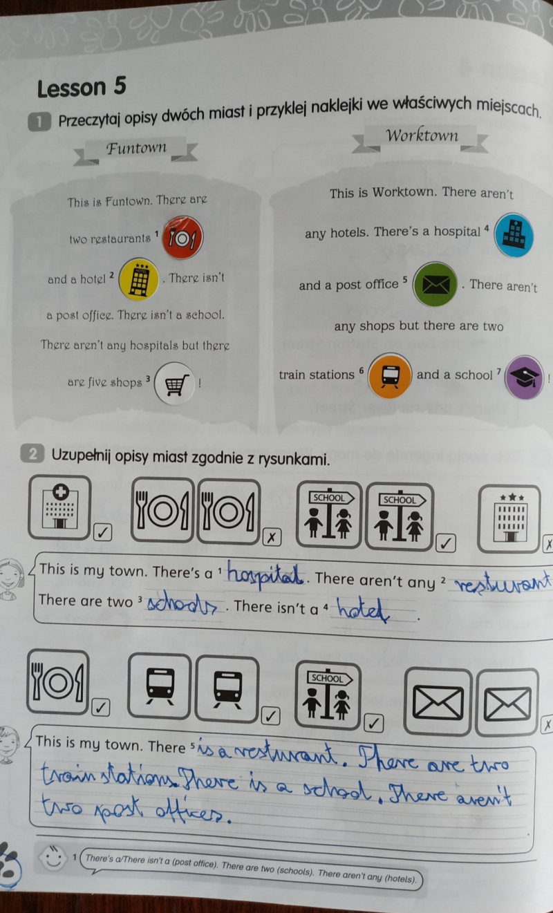 Do tematu udzielania informacji o drogę, czy gdzie znajduje się jakiś sklep, jeszcze wrócimy. Aby utrwalić nowy zasób słownictwa i kontstrukcje There is/ There are… wykonajcie na początek zadanie 1 i 2 strona 50 w Waszych ćwiczeniach.