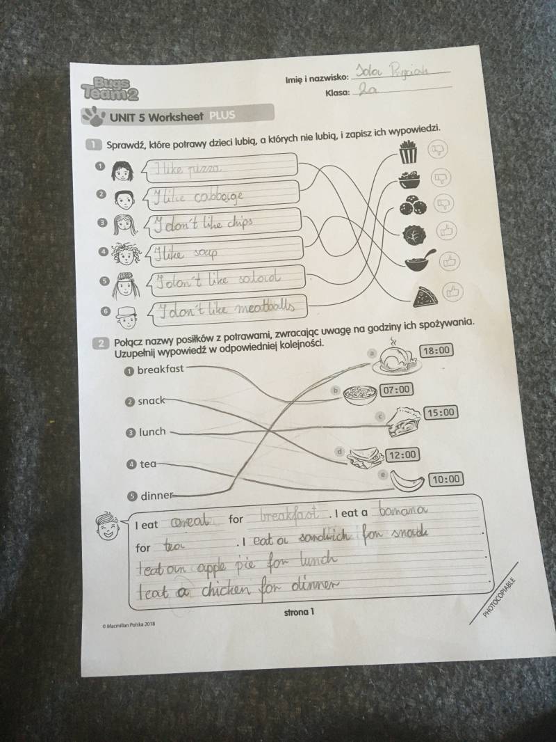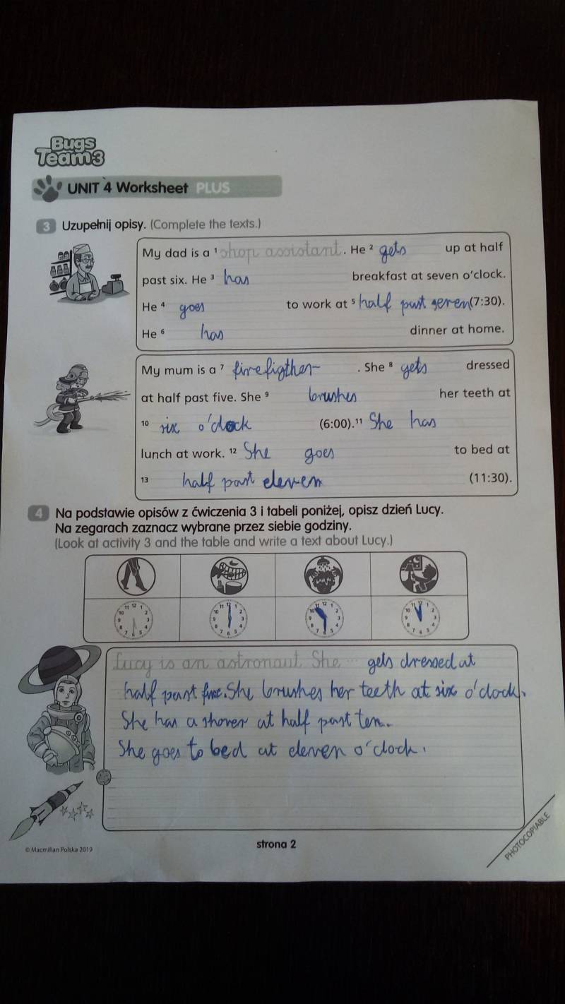 A tutaj praca Weroniki M. Pamiętajcie o odpowiedniej formie czasowników w 3 osobie l.pojedynczej np. gets, eats, has itd.